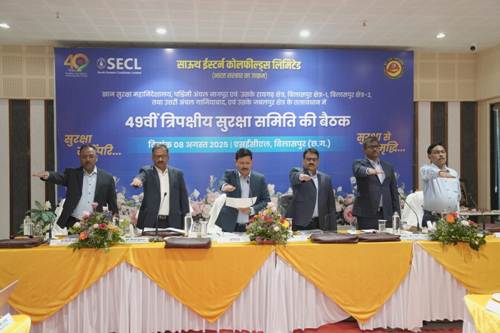विलासपुर। साउथ ईस्टर्न कोलफील्ड्स लिमिटेड (एसईसीएल) बिलासपुर में 8 अगस्त 2025 को खान सुरक्षा महानिदेशालय, पश्चिमी अंचल नागपुर एवं उसके रायगढ़ क्षेत्र, बिलासपुर क्षेत्र-1 एवं क्षेत्र-2, तथा उत्तरी अंचल गाजियाबाद एवं उसके जबलपुर क्षेत्र के तत्वावधान में 49वीं त्रिपक्षीय खान सुरक्षा समिति की बैठक आयोजित की गई।