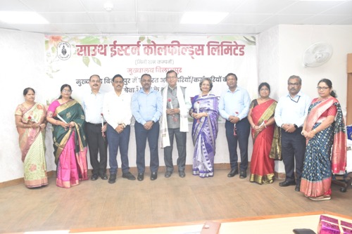 विलासपुर । एसईसीएल मुख्यालय बिलासपुर से सेवानिवृत्त होने वाले  6 कर्मियों  को मुख्य अतिथि मुख्य अतिथि निदेशक (मानव संसाधन)  बिरंची दास ने निदेशक (वित्त)  डी. सुनील कुमार एवं विभिन्न विभागाध्यक्ष, श्रम संघ प्रतिनिधि, अधिकारी और कर्मचारी की उपस्थिति में मुख्यालय बिलासपुर स्थित सीएमडी कक्ष में  शाल, श्रीफल, पुष्पहार से सम्मानित कर समस्त भुगतान का चेक प्रदान कर भावभीनी विदाई दी गयी। सेवानिवृत्त होने वालों में नवनीत श्रीवास्तव महाप्रबंधक (खनन) मानव संसाधन विभाग ,   चंद्र कुमार पाठक महाप्रबंधक (सिविल) सिविल विभाग,  जयंत कविराज वरिष्ठ प्रबंधक (सिविल) सिविल विभाग,  तापस कुमार सरकारकार्यालय अधीक्षक विक्रय विपणन विभाग, श्रीमती संगीता तिवारी कार्यालय अधीक्षक एनईई विभाग, श्री कुमार रॉयचौधरी सुपरवाईजर  ईएंडटी विभाग शामिल रहे।