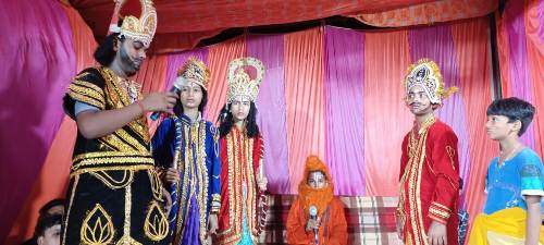 लीला प्रसंगों के मुताबिक विश्वामित्र यज्ञ की रक्षा के लिए राम लक्ष्मण को लेकर आश्रम में पहुंचते हैं। यज्ञ शुरू होते ही राक्षसों ने विघ्न डालने का प्रयास किया। इस प्रभु श्रीराम ने एक बाण से ताड़का राक्षसी का वध कर देते हैं। इसके साथ ही कई राक्षसों का वध कर श्री राम निर्विघ्न यज्ञ सम्पन्न कराते हैं। इसके बाद धनुष यज्ञ में भाग लेने विश्वामित्र के साथ श्रीराम वन में गौतम ऋषि के श्राप से पत्थर बनी अहिल्या का उद्धार करते हैं।जनकपुरी में राम-लक्ष्मण नगर भ्रमण करते हैं।व्यास के रूप में शिरीष चंद्र रहे। वही रोज ने तड़का का, कन्हैया ने सुबाहु का किरदार निभाया।वही राम ने रूप में शानू ने बेहतर अभिनय किया।