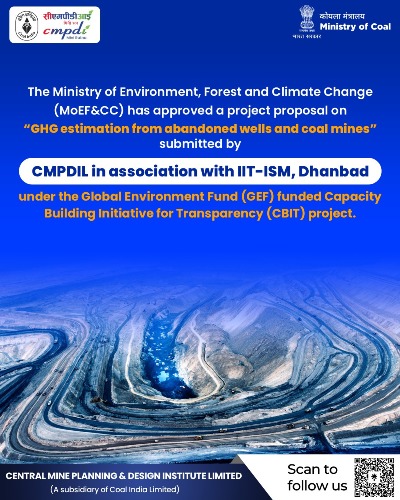 रांची । केन्द्रीय पर्यावरण, वन एवं जलवायु परिवर्तन मंत्रालय (एमओईएफ और सीसी) ने वैश्विक पर्यावरण कोष (जीईएफ) द्वारा वित्त पोषित पारदर्शिता के लिए क्षमता निर्माण पहल (सीबीआईटी) परियोजना के तहत आईआईटी-आईएसएम, धनबाद के सहयोग से सीएमपीडीआई द्वारा प्रस्तुत ‘‘परित्यक्त कुओं और कोयला खदानों से ग्रीन हाउस गैस (जीएचजी) आकलन’’ पर एक परियोजना प्रस्ताव को मंजूरी दे दी है। इस परियोजना का उद्देश्य कोयला खनन क्षेत्र में उड़नशील (फ्यूजीटिव) ग्रीनहाउस गैस उत्सर्जन माप के लिए कार्यप्रणाली का आकलन और परिशोधन करने, सक्रिय और परित्यक्त खुली और भूमिगत कोयला खदानों के लिए उड़नशील उत्सर्जन के लिए उत्सर्जन कारकों का निर्धारण करना है। आईआईटी-आईआईएस, धनबाद ने अनुमान की सटीकता बढ़ाने के लिए प्राप्त आंकड़ों के आधार पर गणितीय मॉडलिंग के संदर्भ में प्रस्ताव में सहायता प्रदान की है।