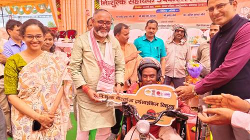 [ इण्डियन आयल के सहयोग से दिव्यांगजनों को निःशुल्क सहायक उपकरण वितरित ]