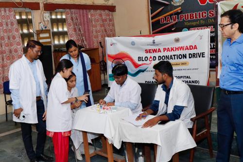 धनबाद।‘स्वस्थ नारी, सशक्त परिवार’ अभियान के अंतर्गत आज सेंट्रल हॉस्पिटल, बीसीसीएल द्वारा डीएवी पब्लिक स्कूल, कोयला नगर में रक्तदान जागरूकता एवं ब्लड ग्रुपिंग टेस्ट कार्यक्रम का आयोजन हुआ। इस अवसर पर विद्यार्थियों को रक्तदान के महत्व और उससे जुड़े विभिन्न पहलुओं के प्रति जागरूक किया गया। साथ ही, एक ब्लड ग्रुपिंग टेस्ट शिविर का भी आयोजन हुआ, जिसमें बड़ी संख्या में स्कूल के विद्यार्थियों के ब्लड ग्रुप की जाँच की गई।