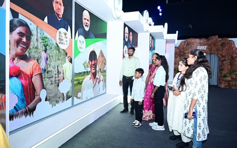 प्रदर्शनी में फ्लैगशिप योजना प्रधानमंत्री मातृ वंदना योजना, प्रधानमंत्री आवास योजना, उज्ज्वला योजना, आयुष्मान भारत योजना, किसान सम्मान निधि, और पर्यटन विकास जैसी योजनाओं को आकर्षक डिजिटल डिस्प्ले के माध्यम से प्रस्तुत किया गया है।बस्तर क्षेत्र की सामाजिक, सांस्कृतिक और आर्थिक यात्रा को 360-डिग्री प्रोजेक्शन और साउंड इफेक्ट्स के साथ दिखाया गया है।