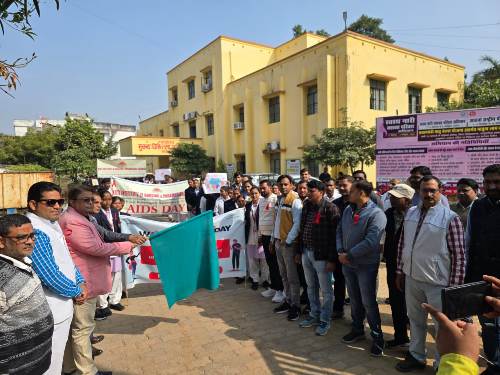 सोनभद्र। प्रत्येक वर्ष की भांति इस वर्ष भी सोमवार 1 दिसम्बर 2025 को विश्व एड्स दिवस के अवसर पर जन जागरूकता लाने के दृष्टिगत मुख्य चिकित्साधिकारी कार्यालय से एक जन-जागरूकता विशाल रैली को मुख्य चिकित्साधिकारी द्वारा हरी झण्डी दिखाकर रवाना किया गया, जो राबर्ट्सगंज शहर के विभिन्न मार्गों से चक्रमण करते हुए महिला थाना, काशी राम आवास से होते हुए जिला क्षय रोग कार्यालय में एक गोष्टी के रूप में परिवर्तित हो गया। रैली में राष्ट्रीय क्षय उन्मूलन कार्यक्रम, उ0प्र0 एड्स नियंत्रण कार्यक्रम के समस्त कर्मचारी तथा किर्ती पाॅली नर्सिंग कॉलेज,राबर्ट्सगंज के छात्र-छात्राओं द्वारा प्रतिभाग किया गया। इस वर्ष की थिम ’’बाधाएं दर किनार, एच0आई0वी0 पर सशक्त प्रहार’’ है। इस विषय पर ओम प्रकाश पाण्डेय कालेज आॅफ पैरामेडिकल एण्ड साइंसेज में गोष्ठी का आयोजन एवं नुक्कड़ नाटक प्रस्तुत कर जागरूक किया गया।