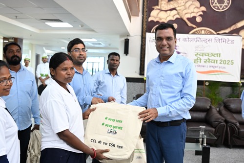 रांची। सेंट्रल कोलफील्ड्स लिमिटेड (सीसीएल) के मुख्यालय दरभंगा हाउस, रांची में 26 सितंबर 2025 को स्वच्छता ही सेवा 2025 – स्पेशल कैंपेन 5.0 के अंतर्गत सीएसआर विभाग द्वारा एक विशेष कार्यक्रम का आयोजन किया गया। इस अवसर पर निदेशक (वित्त) पवन कुमार मिश्रा एवं मुख्य सतर्कता अधिकारी पंकज कुमार की गरिमामयी उपस्थिति में पर्यावरण संरक्षण एवं प्लास्टिक मुक्त जीवनशैली को प्रोत्साहित करने हेतु स्वच्छता मित्रों को जूट बैग का वितरण किया गया।
