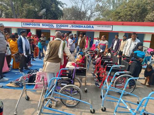 इस अवसर पर लगभग 12 ट्राईसाइकिल और व्हीलचेयर, 4 मूक-बधिर बच्चों को हियरिंग एड, 4 मानसिक दिव्यांग बच्चों को MR किट, 4 नेत्र दिव्यांग बच्चों को VI किट, 2 पूर्ण विकलांग बच्चों को CP चेयर, 9 चलने में असमर्थ बच्चों को रोलेटर और एक पूर्ण रूप से नेत्रहीन बच्चे को स्मार्टमैन दिया गया।खण्ड शिक्षा अधिकारी प्रेम शंकर राम ने कहा कि दिव्यांगता कोई बाधा नहीं है और आधुनिक तकनीक व उपकरणों के माध्यम से दिव्यांग बच्चे भी सामान्य जीवन जी सकते हैं। उन्होंने अभिभावकों से आग्रह किया कि वे अपने बच्चों को शिक्षा से वंचित न करें और उन्हें नियमित रूप से विद्यालय भेजें। वरिष्ठ शिक्षक शैलेश मोहन ने अभिभावकों को दिव्यांग बच्चों का मनोबल बढ़ाने की सलाह दी, जिससे उनके आत्मविश्वास में वृद्धि होगी।इस अवसर पर जिला समन्वयक अधिकारी समेकित प्रणाली प्रभा सारंगी, एलिम्को टीम, विशेष शिक्षक जयप्रकाश, संदीप, दीपक चंद्र, ज्योति अभिरुचि पांडेय और अखिलेश सिंह उपस्थित रहे।