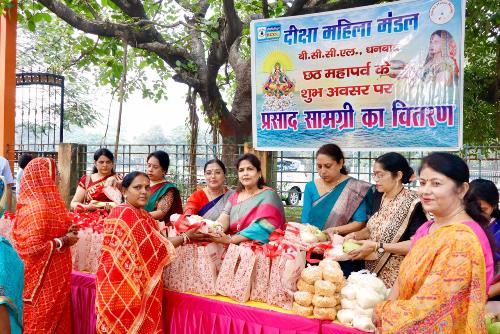 दीक्षा महिला मंडल, बीसीसीएल द्वारा छठ व्रतियों के बीच प्रसाद सामग्री का वितरण