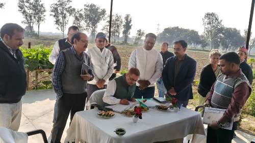 कृषि विज्ञान के वैज्ञानिकों द्वारा नरेन्द्र देव कृषि एवं प्रौद्योगिकी विश्वविद्यालय द्वारा चलायी जा रही विभिन्न परियोजनाएं प्राकृतिक खेती, फर्मेेन्टेड ऑर्गेनिक, मैनुअल के बारे में अवगत कराया गया, कृषि विज्ञान केन्द्र के प्रभारी डॉ0 रश्मि सिंह द्वारा बताया गया कि नरेन्द्र देव कृषि एवं प्रौद्योगिकी विश्वविद्यालय द्वारा सोनभद्र के आदिवासी जनजातीय समाज के कृषकों को विशेष प्रशिक्षण दिया जा रहा है। इस मौके पर जिला कृषि अधिकारी वीरेन्द्र कुमार, मुख्य पशु चिकित्साधिकारी डॉ0 अजय मिश्रा, एल0डी0एम0 श्री साल्वे वागे, भूमि संरक्षण अधिकारी के0के0 सिंह, कृषि विज्ञान केन्द्र के वैज्ञानिक डॉ0 रश्मि सिंह, डॉ0 संजीव राय, डॉ0 अवनीश राय, डॉ0 संजीव राय एवं कर्मचारीगण उपस्थित रहे।