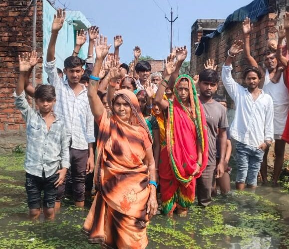 लोग परेशान पानी में खड़े होकर प्रदर्शन कर जताया आक्रोश