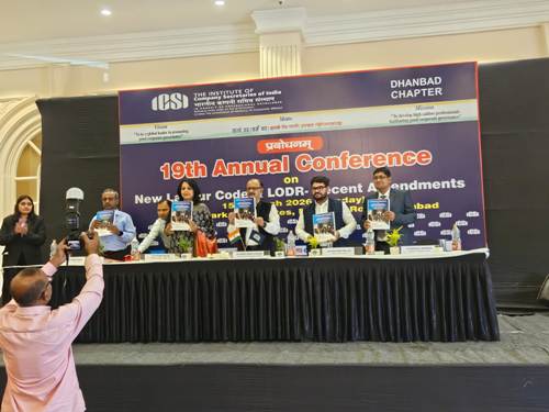 कार्यक्रम में कंपनी सेक्रेटरी (भूतपूर्व) बीसीसीएल, श्री बी.के. पारुई सहित ICSI के पदाधिकारी, उद्योग जगत के विशेषज्ञ, कॉर्पोरेट प्रोफेशनल्स तथा बड़ी संख्या में विद्यार्थी एवं प्रतिभागी उपस्थित थे। सम्मेलन में श्रम कानूनों, कॉर्पोरेट अनुपालन और कॉर्पोरेट गवर्नेंस से जुड़े समसामयिक विषयों पर विशेषज्ञों द्वारा विचार-विमर्श किया गया। अंत में आयोजकों ने कार्यक्रम में उपस्थित सभी अतिथियों, वक्ताओं और प्रतिभागियों के प्रति आभार व्यक्त किया।