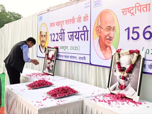 गौतमबुद्धनगर। एनटीपीसी दादरी में महात्मा गांधी एवं लाल बहादुर शास्त्री जयंती मनाई गई। इस अवसर पर चंद्रमौली काशिना, कार्यकारी निदेशक एवं परियोजना प्रमुख (एनटीपीसी दादरी), ए.के. मिश्र, मुख्य महाप्रबंधक (प्रचालन एवं अनुरक्षण), श्रीमती दुर्गा कुमारी, अध्यक्षा (जागृति समाज), महाप्रबंधकगण, विभागाध्यक्ष, एनटीपीसी कर्मचारी, केंद्रीय औद्योगिक सुरक्षा बल (सीआईएसएफ) के जवान, विद्यालयों के प्राचार्य, यूनियन/संघ, कल्याण निकाय प्रतिनिधि, विद्युत नगर निवासी एवं स्कूली बच्चों की उपस्थिति रही।