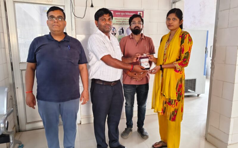 दुद्धी (सोनभद्र)। दुद्धी ब्लॉक में तैनात ग्राम पंचायत अधिकारी सुरेंद्र कुमार ने सोमवार को अपने पुत्र प्रतीक कुमार के दूसरे जन्मदिन को अनोखे और प्रेरणादायी तरीके से मनाया। उन्होंने दुद्धी स्थित सामुदायिक स्वास्थ्य केंद्र के ब्लड बैंक में पहुंचकर रक्तदान किया और समाज को मानवता का संदेश दिया।