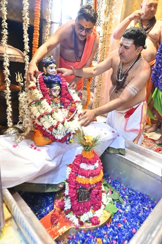 अन्नकूट पर्व के शुभ अवसर पर भगवान श्री विश्वनाथ, माता गौरी एवं गणेश जी की पंचबदन रजत चल-प्रतिमा की भव्य शोभायात्रा टेढ़ीनीम स्थित महंत परिवार के आवास से प्रारंभ होकर शहनाई व् डमरू की मंगल ध्वनि और हर-हर महादेव के जयघोष के साथ गर्भगृह में उत्सव पूर्वक विराजमान हुई, जिसके पश्चात गर्भगृह में श्री विश्वनाथ जी की मध्याह्न भोग आरती विधि-विधानपूर्वक सम्पन्न की गई। इस पावन अवसर पर श्री विश्वेश्वर को विभिन्न प्रकार के भोग भगवान को अर्पित किया गया। भोग आरती के उपरांत श्रद्धालुओं के बीच प्रसाद वितरण अन्नकूट पर्व की विशेष परंपरा का अभिन्न अंग है। श्रद्धालुओं ने अत्यंत भावपूर्वक प्रसाद ग्रहण किया और भगवान विश्वनाथ से समृद्धि, स्वास्थ्य एवं शांति की कामना की।