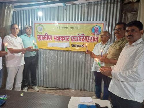 वाराणसी। ग्रामीण पत्रकार एसोसिएशन, वाराणसी जिला इकाई ने शुक्रवार को शाम को वाराणसी कैंट स्टेशन के सामने मानसरोवर होटल कैंप कार्यालय पर कैंडल मार्च आयोजित कर वैष्णो देवी यात्रा में प्राकृतिक आपदा में जान गंवाने वाले श्रद्धालुओं को श्रद्धांजलि दी।