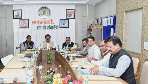 ‘उपमुख्यमंत्री विजय शर्मा सहित वन मंत्री केदार कश्यप एवं संस्कृति मंत्री राजेश अग्रवाल बैठक में हुए शामिल