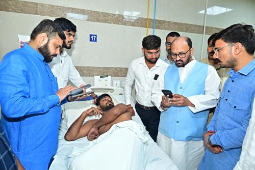 लखनऊ, / प्रदेश के उच्च शिक्षा मंत्री योगेन्द्र उपाध्याय शुक्रवार को किंग जॉर्ज चिकित्सा विश्वविद्यालय लखनऊ पहुंचे, जहाँ उन्होंने रामस्वरूप मेमोरियल विश्वविद्यालय में एलएलवी पाठ्यक्रम की मान्यता नवीनीकरण एवं अवैध वसूली को लेकर प्रदर्शन के दौरान घायल हुए छात्रों से भेंट की। मंत्री ने घायल छात्रों से उनका हालचाल पूछा, उनकी चिकित्सा व्यवस्था की जानकारी ली और उन्हें हर संभव सहयोग देने का आश्वासन दिया।