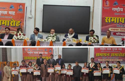 अनपरा, सोनभद्र।राष्ट्रीय सड़क सुरक्षा अभियान के तहत परिवहन विभाग, सोनभद्र द्वारा डायट परिसर में आयोजित राष्ट्रीय सड़क सुरक्षा जागरूकता कार्यक्रम में हिंडालको रेनुसागर के विद्यालयों के छात्र- छात्राओं की गूंज,परिवहन विभाग ने किया सम्मानित।