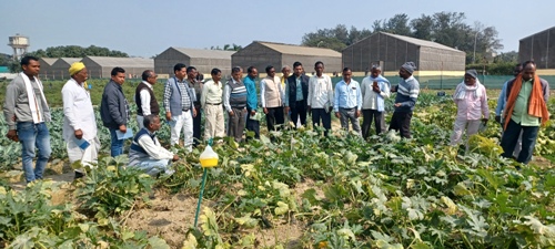 भ्रमण के दौरान संस्थान द्वारा किसानों को विकसित, नवीन एवं उन्नत कृषि तकनीकियों से अवगत कराया गया। उन्होंने ब्रिमेटो, पोमेटो, ग्राफ्टेड मिर्च एवं टमाटर जैसी नवीन प्रकार की सब्जियों के साथ-साथ मिर्च, बैंगन, मूली एवं विंग्ड बीन की उच्च उपज वाली किस्मों को प्रत्यक्ष रूप से देखा। साथ ही, हाइड्रोपोनिक खेती, जैविक खेती मॉडल, मशरूम उत्पादन, मधुमक्खी पालन, वर्मी कम्पोस्ट तथा नाडेप कम्पोस्ट निर्माण जैसी सहायक गतिविधियों की विस्तृत जानकारी तकनीकी अधिकारी अजय कुमार यादव द्वारा दी गयी। तकनीकी सत्र के दौरान प्रधान वैज्ञानिक डॉ. नीरज सिंह ने किसानों को संस्थान की उन्नत तकनीकों को अपनाकर सफल कृषि उद्यमी बनने तथा पोषण सुरक्षा में योगदान देने का अह्वान किया। प्रधान वैज्ञानिक डॉ. सुदर्शन मौर्य ने सब्जी उत्पादन की आधुनिक विधियों, बाजार रणनीतियों एवं संभावित चुनौतियों के बारे में विस्तृत व्याख्यान दिया तथा मशरूम उत्पादन की उन्न्त तकनीकों पर चर्चा की। इस अवसर पर प्रधान वैज्ञानिक डॉ. विकास सिंह भी उपस्थित रहे।