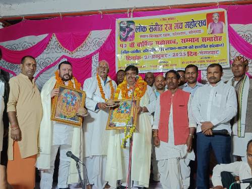 घोरावल, सोनभद्र। शिवशक्ति लोक रंगमंच महोत्सव की बिखरी दिव्य छटा , शिवद्वार में लोकगीत, लोकनाट्य, गायन-वादन की बही रसधार। दीपावली के अगले दिवस सन्ध्या वेला से शुरू महोत्सव में मानद विभूतियों के नाम उनकी स्मृति में आयोजित हुआ सम्मान समारोह भी। विलुप्त होती सोनभद्र की सांस्कृतिक लोकविधाओं की जीवन्त प्रस्तुतियों से गुलजार रंगमंच पर अन्य विविध विधाओं से रात्रि भर व सुबह तक चला महोत्सव।