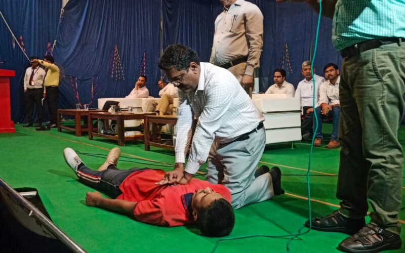 स्वास्थ्य विभाग से सम्बन्धित अधिकारियों ने माॅक ड्रिल के माध्यम से गैस सिलेण्डर में आग से बचावए सी0पी0आर0 पद्धति आग बुझाने की प्रक्रियाए दुर्घटना में घायल होने पर बचाव से सम्बन्धित माॅक ड्रिल का प्रदर्शन भारी संख्या में उपस्थित छात्र.छात्राओं व जनमानस के बीच किया गया।
