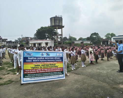 बीजपुर। एनटीसी रिहंद के सतर्कता विभाग द्वारा तीन माह के सतर्कता जागरूकता अभियान 2025 के अंतर्गत आदर्श शिक्षा निकेतन, बीजपुर में सत्यनिष्ठा प्रतिज्ञा समारोह का आयोजन किया गया। इस कार्यक्रम में कक्षा 1 से 12 तक के लगभग 550 छात्र-छात्राएँ तथा विद्यालय के प्राचार्य शामिल रहे। समारोह के दौरान छात्रों को ईमानदारी, पारदर्शिता, अनुशासन और नैतिक मूल्यों का पालन करने की शपथ दिलाई गई। साथ ही, तीन माह तक चलने वाले अभियान के दौरान आयोजित होने वाले विभिन्न प्रतियोगिताओं, गतिविधियों और जागरूकता कार्यक्रमों की जानकारी विस्तारपूर्वक साझा की गई ताकि विद्यार्थी इस अभियान में बढ़-चढ़कर भाग लें और समाज में नैतिकता एवं स्वच्छ छवि को बढ़ावा दें।