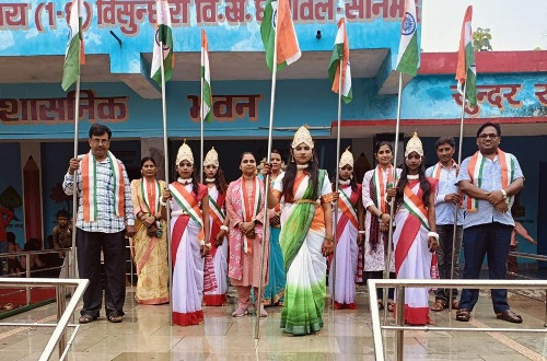 सोनभद्र। घोरावल के कम्पोजिट विद्यालय विसुन्धरी में ऑपरेशन सिंदूर का गौरव प्रतिष्ठित करने हेतु बालिकाओं ने मां भारती का रूप धारण कर तिरंगा लहराते हुए भारत की एकता और अखण्डता का संदेश दिया। कार्यक्रम समन्वयक दीनबन्धु त्रिपाठी ने बताया अभी हाल ही में घटित पहलगाम की बर्बर घटना के प्रति बच्चों के अन्दर बहुत जिज्ञासा थी, जिसे ऑपरेशन सिन्दूर के जरिये दमन कर महिलाओं के सिंदूर की लालिमा अक्षुण्य है का सन्देश दिया गया था। इसे समझने हेतु विद्यालय में बच्चों के बीच भारत माता बनने की प्रतियोगिता आयोजित की गयी। जिसमें पांच बच्चियों ने भारत माता का प्रतिरूप धारण किया। सभी बच्चों और शिक्षकों के हाथों में तिरंगा लहरा रहा था, एक अद्भुत छटा बिखर रही थी। लग रहा था जैसे मां भारती हरीतिमा के बीच आसमान से अवतरित हुईं हों। तिरंगा यात्रा भी निकाली गयी। इस दौरान गगनभेदी नारों से वातावरण गुंजायमान रहा। प्र.अ. रजनीश श्रीवास्तव ने तिरंगा पर ब्याख्यान देकर कार्यक्रम की प्रासंगिकता पर प्रकाश डाला। कार्यक्रम में कंचन, प्रतिमा, सुनीता, मुन्नी देवी व अजीत कुमार उपस्थित रहे।