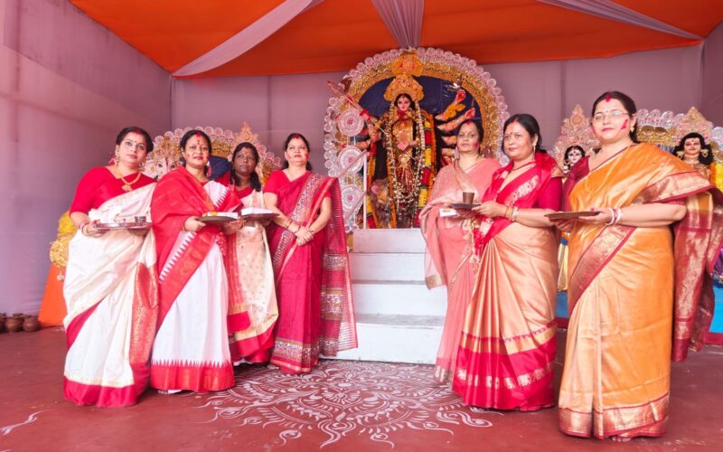 माॅ दुर्गा एवं लक्ष्मी, गणेश, सरस्वती व भगवान कार्तिकेय की प्रतिमाओं को विसर्जित करने के पूर्व वैदिक मंत्रोचार,अपराजिता पूजा, हवन ,कलस विसर्जन व सिन्दूरदान के उपरान्त  पूरे रेनूसागर कालोनी का चक्रमण कराया गया। तत्पश्चात जय माता दी- जय माता दी  के उद्घोष   के साथ  श्री श्री दुर्गा पूजा समिति रेनूसागर के युवा कार्यकर्ताओं द्वारा गाजे बाजे के साथ डी जे की धुन पर थिरकते व नाचते गाते हुए   निकाला गया। तत्पश्चात माॅ की भब्य प्रतिमा को शांति जल में विसर्जित किया गया। इस सम्बन्ध में आशा मण्डल  ने बताया की हमारे सनातन धर्म में विसर्जन की परम्परा का पालन किया जाता है , मूर्ति का विसर्जन के पूर्व माता रानी का पूरा श्रृंगार  किया जाता है महिलाये एक दूसरे की मांग पर सिंदूर लगाती है जो समृद्धि का प्रतीक माना गया है । पूजा समिति के सचिव समित मंडल ने उपस्थित  जन समूह को माॅ दुर्गा का शुभाशीष दिया। कार्यक्रम को सफल बनाने में गोपाल मुखर्जी,प्रदुयुत दास, पलटू चटर्जी का सराहनीय सहयोग रहा।इस अवसर पर  दिशिता महिला मंडल की वरिष्ठ सदस्य इंदु सिंह ,विभा शैलेश सिंह,आशा मण्डल,रीता चटर्जी,संगीता घोष,सुनीता रॉय,शर्मिला घोष ,सुमन द्विवेदी सहित भारी संख्या में महिलाएं ने माँ दुर्गा की प्रतिमा का विसर्जन के पूर्ब माता को सिंदूर चढ़ाती हुई दिखी, जो माता के सौंदर्य और शक्ति का सम्मान करने का प्रतीक होता है।इसके बाद महिलाएं एक-दूसरे को भी सिंदूर लगाती हैं और मिठाइयाँ खिलाकर सौभाग्य, प्रेम, और दीर्घायु जीवन की शुभकामनाएं देती हैं। इस रस्म को बंगाली परंपरा में “सिन्दूर खेला” कहा जाता है, और उत्तर भारत में इसे “सिन्दूर दान” या “सिन्दूर अर्पण” कहा जाता है।