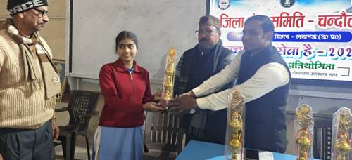 जिला परियोजना अधिकारी दर्शन निषाद नें जिले टॉपर यू.पी बोर्ड चंदौली में प्रथम स्थान आयी छात्रा नगर पालिका इंटर कॉलेज की शिवानी प्रजापति को मेडल पाँच सौ नगद पुरस्कार देकर सम्मानित किया और प्रधानमंत्री मोदी जी के साथ बिताए पल एवं परेड 2026 का मंचन एवं लाल किला तथा राजपथ झांकी के बारे में विस्तृत जानकारी दी, सभी लोगों नें जिला गंगा समिति चंदौली के कार्यों की सराहना किया।