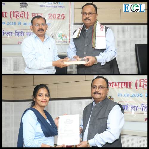 02.09.2025, दिवस मंगलवार को ईसीएल के मानव संसाधन विभाग के सभा कक्ष में राजभाषा (हिंदी) माह, 2025 का शुभारंभ कार्यक्रम के साथ-साथ बांग्ला-हिंदी काव्य पाठ एवं हिंदी टंकण प्रतियोगिता का आयोजन किया गया जिसमें मुख्य अतिथि के रूप में निदेशक (मानव संसाधन) गुंजन कुमार सिन्हा की मंगलकारी उपस्थिति रहीं।