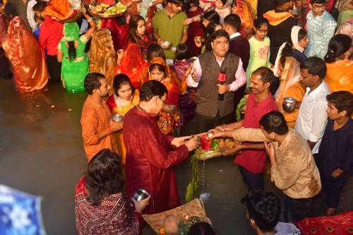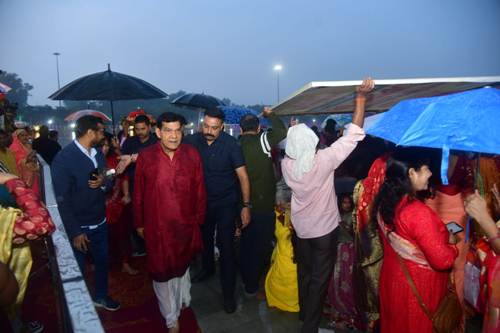 लखनऊ/ सूर्य उपासना के महापर्व छठ के पावन अवसर पर नगर विकास एवं ऊर्जा मंत्री ए.के. शर्मा ने लखनऊ के लक्ष्मण मेला घाट पर पहुंचकर भगवान सूर्य को अर्घ्य अर्पित किया और प्रदेशवासियों के सुख, शांति, समृद्धि एवं उत्तम स्वास्थ्य की मंगलकामना की। श्रद्धालुओं की भीड़ और हल्की बूंदाबांदी के बीच मंत्री श्री शर्मा ने स्वयं घाट पर पहुंचकर पूजन-अर्चन में सहभागिता की तथा वहां उपस्थित श्रद्धालुओं से संवाद भी किया। उन्होंने कहा कि छठ महापर्व भारतीय संस्कृति का वह प्रतीक है जो अनुशासन, समर्पण, स्वच्छता और पर्यावरण संरक्षण का अद्भुत संदेश देता है।