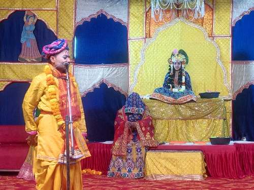 इस दौरान बड़ी संख्या में नगर वासी वृंदावन से पहुंचे कलाकारों की रासलीला देखने के लिए पहुंचे।