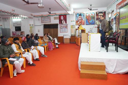 प्रयागराज।[ मनोज पांडेय ] सिविल लाइन्स स्थित प्रतिष्ठित शिक्षण संस्थान ज्वाला देवी सरस्वती विद्या मन्दिर के सभागार में 27 दिसम्बर 2025 को काशी प्रान्त की प्रान्तीय प्रचार विभाग की एक दिवसीय कार्यशाला का आयोजन अत्यंत गरिमामय वातावरण में संपन्न हुआ। इस कार्यशाला का मुख्य उद्देश्य डिजिटल युग की चुनौतियों को स्वीकार करते हुए संगठन की विचारधारा और सामाजिक कार्यों को जन-जन तक पहुँचाने के लिए कार्यकर्ताओं को प्रशिक्षित करना था। इस महत्वपूर्ण बैठक में काशी प्रान्त के अंतर्गत आने वाले सभी 08 संकुलों (केशव, माधव, सुल्तानपुर, मिर्जापुर, सोनभद्र, काशी, प्रतापगढ़ एवं जौनपुर) से आए प्रचार प्रमुखों, सोशल मीडिया प्रमुखों और संवाददाताओं ने उत्साहपूर्वक सहभागिता की। कार्यक्रम का विधिवत शुभारंभ मुख्य अतिथि एवं प्रदेश निरीक्षक शेषधर द्विवेदी द्वारा दीप प्रज्वलन एवं माँ सरस्वती के चित्र पर माल्यार्पण के साथ हुआ। प्रथम सत्र को संबोधित करते हुए द्विवेदी ने कहा कि आज के सूचना क्रांति के युग में प्रचार केवल एक माध्यम नहीं, बल्कि एक अनिवार्य आवश्यकता बन चुका है। उन्होंने जोर देकर कहा कि कार्यकर्ता निस्वार्थ भाव से समाज सेवा के जो प्रकल्प चला रहे हैं, उन्हें समाज के सम्मुख लाना आवश्यक है ताकि जनमानस में सकारात्मकता का संचार हो सके। उन्होंने ’’कार्य के साथ-साथ समाज तक पहुँच’’ को संगठन का वर्तमान लक्ष्य बताया।