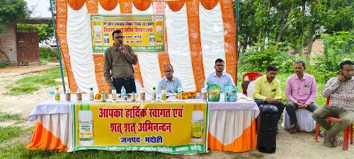 किसानो को सागरिका, लिक्विड कंसोर्टिया, नैनो जिंक एवं जल विलय उर्वरक के बारे में भी जानकारी दी गई।