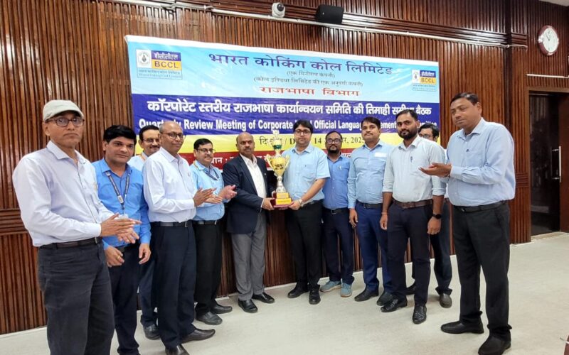 धनबाद।मुख्यालय स्तर पर औद्योगिक संबंध विभाग और क्षेत्रीय स्तर पर बस्ताकोला क्षेत्र को प्राप्त हुआ राजभाषा का चल वैजयंती शील्ड