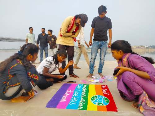 कार्यक्रम की शुरुआत अनामिका और श्रेया ने उपस्थित लोगों का स्वागत उद्बोधन से किया। प्रतिभागियों ने रंग-बिरंगी रंगोलियाँ बनाई। रंगोली में समाज मे लैंगिक भेदभाव को दर्शाया गया। सबको सम्मान और प्यार देने के चित्र उकेरे गए। शाम ढलते ढलते विभिन्न समूहों संस्थाओं से जुटे प्रतिभागियों ने आशा के दीप जलाए।