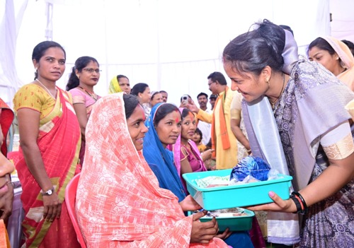 समाधान शिविर में गोद भराई कार्यक्रम के तहत मंत्री श्रीमती राजवाड़े ने महिलाओं को स्नेह और आशीर्वाद देते हुए मातृत्व का सम्मान किया। नवजातों को अपने हाथों से खिलाते हुए उन्होंने माताओं के चेहरों पर मुस्कान बिखेरी। इसके साथ ही किसानों को ऋण पुस्तिकाएं वितरित करते हुए उन्होंने कहा, किसान हमारी अर्थव्यवस्था की रीढ़ हैं, उनकी समृद्धि सरकार की सर्वाेच्च प्राथमिकता है।