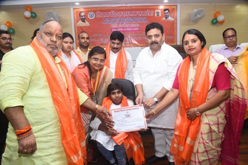 शिक्षक दिवस पर जनपद के समस्त आठ विकास खण्ड में आज शिक्षक दिवस उत्साह पूर्वक मनाया गया। विकासखंड में उत्कृष्ट कार्य करने वाले अध्यापकों को अंगवस्त्रम व प्रशस्ति पत्र के साथ सम्मानित किया गया। इसी क्रम में जनपद स्तर पर सर्किट हाउस में उत्कृष्ट शिक्षकों को प्रमाण पत्र एवं अंगवस्त्र प्रदान कर सम्मानित किया गया। मंत्री रविंद्र जायसवाल ने कहा कि शिक्षक कभी सेवानिवृत नहीं होता है। समाज के बच्चों का भविष्य शिक्षक के हाथ में होता है। अभिभावक शिक्षक पर विश्वास करके उसे अपने बच्चों बच्चों को सौंप देता है। धन्यवाद ज्ञापन के साथ शिक्षक दिवस की हार्दिक शुभकामनाएं दी।