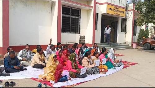मेदनीखाड़ गांव के सेक्रेट्री के विरोध में ग्राम प्रधानों का धरना