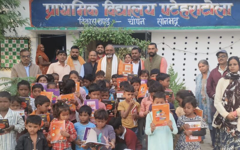 डाला/सोनभद्र  — प्राथमिक विद्यालय पटेहेरा टोला में शुक्रवार को बाल दिवस के अवसर पर उत्साहपूर्ण माहौल देखने को मिला। सदर विधायक भूपेश चौबे विद्यालय पहुंचकर नन्हे-मुन्ने बच्चों के बीच शामिल हुए और उन्हें मिठाई, कॉपी तथा पेंसिल वितरित कर उत्साहित किया।