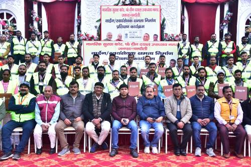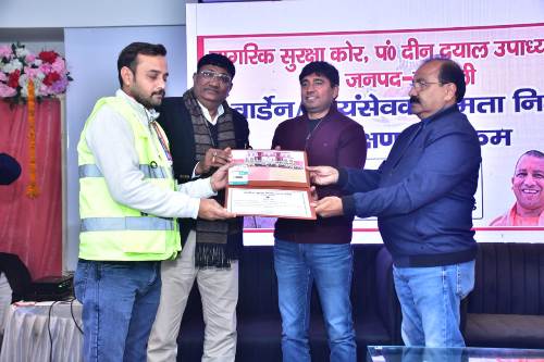 चन्दौली। भारत सरकार द्वारा प्रायोजित नागरिक सुरक्षा के वार्डन एवं स्वयंसेवकों का क्षमता निर्माण प्रशिक्षण का सात दिवसीय प्रशिक्षण सत्र के अंतिम दिन समापन सत्र आयोजित किया गया । प्रशिक्षण के समापन में सभी वार्डन एवं स्वयंसेवकों को जिनके द्वारा प्रशिक्षण प्राप्त किया गया था , सभी प्रशिक्षणार्थियों को उप जिलाधिकारी राजीव मोहन सक्सैना द्वारा प्रशिक्षण प्रमाण पत्र परिचय पत्र एवं प्रशिक्षण किट दिया गया।