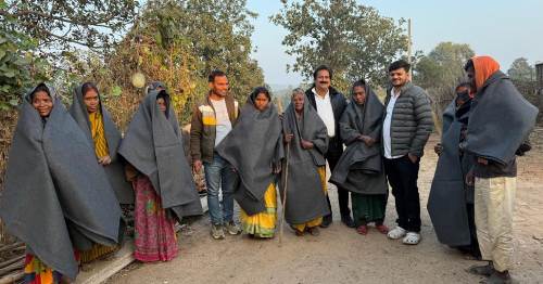 डाला(सोनभद्र)। कोटा ग्राम पंचायत क्षेत्र अंतर्गत आदिवासी बाहुल्य सुदूर जंगलों में स्थित ढेरहंवा गांव में मंगलवार की देर शाम ट्रिपल एस परिवार द्वारा एकाएक बढ़़ती कड़ाके कि ठंड को देखते हुए गरीब वनवासियों के बीच कंबल व भोजन वितरण कर कड़कड़ाती सर्दी में राहत की गरमाहट का एहसास कराया गया ।