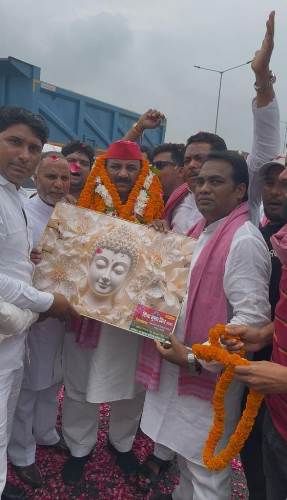 कटरिया । जनपद चंदौली में विश्व आदिवासी दिवस के अवसर पर आयोजित कार्यक्रम में शिरकत करने जा रहे समाजवादी पार्टी के प्रदेश अध्यक्ष श्यामलाल पाल का जनपद चंदौली में प्रथम आगमन पर चन्दौली के प्रथम ग्राम पंचायत कटरिया में समाजवादी पिछड़ा वर्ग प्रकोष्ठ के जिला अध्यक्ष डॉ विरेन्द्र कुमार बिन्द के नेतृत्व में सैकड़ो समाजवादी कार्यकर्ताओं के साथ जोरदार स्वागत किया गया। श्री बिन्द ने माल्यार्पण कर गौतम बुद्ध की प्रतिमा भेंट किया।