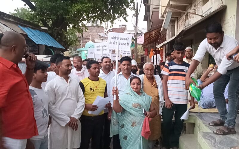 अहरौरा, मिर्जापुर / स्वदेशी जागरण मंच द्वारा मंगलवार शाम को नगर में जन जागरुकता रैली निकाल कर लोगों को दूध दही थाली में पेप्सी कोको कोला नाली में नारे के साथ जागरूक करते हुए स्वदेशी वस्तुओं को अपनाने और विदेशी वस्तुओं का त्याग करने की अपील की गई।