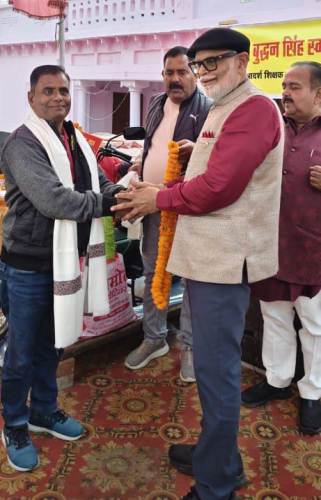 ठाकुर बुद्ध सिंह स्मारक संस्थान ने आदर्श शिक्षक को दिया मोपेड सम्मान
