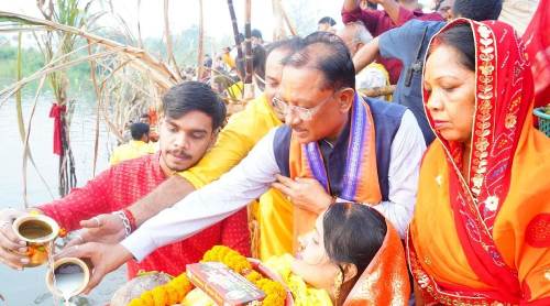 रायपुर /मुख्यमंत्री विष्णु देव साय और उनकी धर्मपत्नी श्रीमती कौशल्या साय ने आज छठ महापर्व के पावन अवसर पर जशपुर जिले के कुनकुरी छठ घाट में उगते सूर्य को अर्घ्य अर्पित किया। मुख्यमंत्री श्री साय ने प्रदेश की सुख, समृद्धि और खुशहाली की कामना करते हुए प्रदेशवासियों को छठ पूजा की हार्दिक शुभकामनाएं दीं। उन्होंने कहा कि छठ पूजा सूर्य उपासना और सामाजिक समरसता का प्रतीक है।