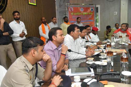 जिलाधिकारी शैलेष कुमार द्वारा समीक्षा बैठक के दौरान विभिन्न विकासात्मक बिन्दुओं पर बल दिया गया। साथ ही पुलिस अधीक्षक अभिमन्यु मांगलिक द्वारा भी जनपद में शान्ति सुरक्षा व कानून व्यवस्था के दृष्टिगत किए गए प्रभावी कार्याे से प्रभारी मंत्री जी को अवगत कराया गया। प्रभारी मंत्री जी द्वारा समीक्षा बैठक में उपस्थित जनप्रतिनिधियों द्वारा उठाये गये शिकायती बिन्दुओं से सम्बन्धित गम्भीरता पूर्वक सभी अधिकारियों को निर्देशित किया गया कि प्रधानमंत्री व मुख्यमंत्री जी के मंशानुरूप कार्य करते हुए शासन की जनकल्याणकारी योजनाओं नीतियों से जनपदवासियों को संतृप्त किया जाय। बैठक में सांसद विनोद बिंद, जिला पंचायत अध्यक्ष अनिरुद्ध त्रिपाठी, विधायक औराई दीनानाथ भास्कर, विधायक ज्ञानपुर विपुल दुबे, विधायक भदोही जाहिद बेग, जिला अध्यक्ष दीपक मिश्र, जिलाधिकारी शैलेश कुमार, पुलिस अधीक्षक अभिमन्यु मांगलिक सहित अन्य जनप्रतिनिधिगण व समस्त जनपदीय अधिकारी उपस्थित रहे।