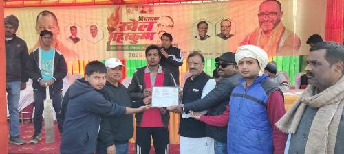 सोनभद्र। विधायक खेल महाकुंभ के चौथे दिन कैनवस क्रिकेट के रोमांचक मुकाबले खेले गए। इस दौरान छह टीमों ने प्रतिभाग किया। खेलों के साथ-साथ कुछ पारंपरिक खेलों का भी आयोजन किया गया, जो दर्शकों के आकर्षण का केंद्र बने।कार्यक्रम को संबोधित करते हुए विधायक भूपेश चौबे ने कहा कि पुरातन और नूतन का समन्वय ही हमारी पहचान है। जब पुरानी परंपराएं और नई सोच साथ आती हैं, तो नया सृजन होता है। उन्होंने युवाओं से आह्वान किया कि आधुनिकता के साथ-साथ पुरातन मूल्यों की उपेक्षा न करें।पहला कैनवस क्रिकेट मैच संत जोसेफ कॉन्वेंट स्कूल और प्रकाश जीनियस स्कूल के बीच खेला गया। टॉस पूर्व सांसद नरेंद्र कुशवाहा ने कराकर मैच का शुभारंभ किया। टॉस जीतकर पहले बल्लेबाजी करते हुए प्रकाश जीनियस स्कूल की टीम ने निर्धारित 10 ओवर में 4 विकेट के नुकसान पर 154 रन का बड़ा स्कोर खड़ा किया। हेमंत ने शानदार बल्लेबाजी करते हुए 30 गेंदों में 4 चौके और 6 छक्कों की मदद से 73 रन बनाए। जवाब में संत जोसेफ कॉन्वेंट स्कूल की टीम 8 ओवर में 100 रन पर सिमट गई। कुशाग्र ने 40 रनों की पारी खेली। यह मुकाबला प्रकाश जीनियस स्कूल ने 54 रनों से जीत लिया।दूसरा मैच खलियारी और चतरा के बीच खेला गया। टॉस पूर्व नगर पालिका परिषद सोनभद्र के अध्यक्ष विजय जैन और प्रतिष्ठित व्यवसायी कृष्णानंद गुप्ता ने कराया। पहले बल्लेबाजी करते हुए चतरा की टीम 10 ओवर में 64 रन पर सिमट गई। लक्ष्य का पीछा करने उतरी खलियारी की टीम 46 रन पर ही ऑलआउट हो गई। इस तरह चतरा की टीम ने 18 रनों से जीत दर्ज की।तीसरा मुकाबला रजधन और मारकुंडी के बीच खेला गया। रजधन की टीम ने टॉस जीतकर पहले बल्लेबाजी करते हुए 8 ओवर में 74 रन बनाए। जवाब में मारकुंडी की टीम 69 रन ही बना सकी। रजधन की टीम ने यह मैच 5 रनों से जीतकर अगले दौर में अपनी जगह पक्की की।मैच के समापन पर डॉ. एच. पी. सिंह और वरिष्ठ क्रिकेटर संतोष सिंह द्वारा खिलाड़ियों को प्रशस्ति पत्र प्रदान किए गए। चौथे दिन के खेल देखने के लिए बड़ी संख्या में खेल प्रेमी और जनप्रतिनिधि देर शाम तक मैदान में मौजूद रहे और खिलाड़ियों का उत्साहवर्धन किया।