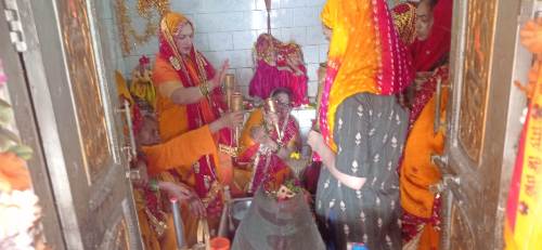 सावन माह के 28वें दिन वृहस्पतिवार को भिखारी भोले सेवा ट्रस्ट के संरक्षक जेबी सिंह राय साहब, रत्ना सिंह, डॉक्टर विजय, उर्मिला देवी,गुड़िया मानस कुमार, किशोरी लाल, खुशबू देवी, विमला देवी, करुणा सिंह, भिखारी भोले सेवा ट्रस्ट की उपाध्यक्ष चिंता मौर्य, कालो देवी, पंडित रेवती नाथ त्रिपाठी, रामा त्रिपाठी को वैदिक मंत्रोच्चार के साथ आचार्य कौशल तिवारी ने गंगाजल व दूध से रुद्राभिषेक पूजन कराया। भिक्षुक भिखारी रमाशंकर गिरी उर्फ जंगली बाबा ने बताया कि शिव शक्ति महिला मंडल एवं भिखारी भोले सेवा ट्रस्ट की ओर से प्रतिदिन सावन माह भर रुद्राभिषेक पूजन किया जाएगा। आरती पूजन में राजेंद्र महाराज, सुखराम महाराज, इन्द्रपति पांडेय महाराज, सुरेश महाराज आदि मौजूद रहे। इस दौरान समूचा मंदिर परिसर हर हर महादेव के जयकारे से गुंजायमान हो गया।