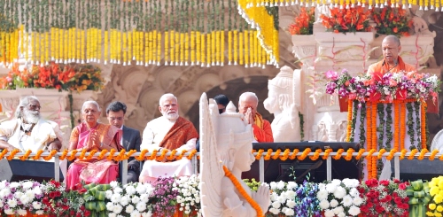 प्रधानमंत्री ने कहा कि आज अयोध्या नगरी भारत की सांस्कृतिक चेतना के एक और उत्कर्ष बिन्दु की साक्षी बन रही है। सम्पूर्ण भारत व विश्व राममय है। प्रत्येक राम भक्त के हृदय में अद्वितीय सन्तोष, असीम कृतज्ञता व अपार अलौकिक आनन्द है। आज सदियों की वेदना विराम पा रही है। सदियों का संकल्प सिद्धि को प्राप्त हो रहा है। आज उस यज्ञ की पूर्णाहूति हुई है, जिसकी अग्नि 500 वर्ष तक प्रज्ज्वलित रही तथा जो यज्ञ एक भी पल आस्था से नहीं डिगा, विश्वास से नहीं टूटा।