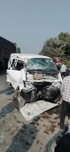 मारुति वैन में ट्रेलर ने मारी टक्कर वैन चालक घायल